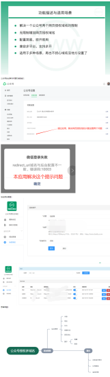目前微信公众号网页授权域名只允许设置两个域名,通过本应用可以设置无限个域名,实现多个网站(域名)同时使用一个微信公众号。